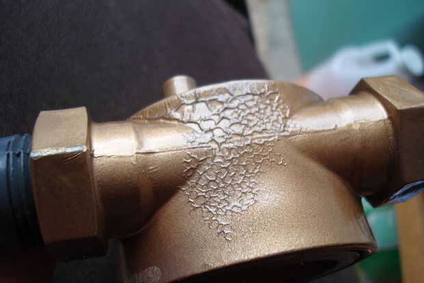 Sin embargo, surgió un problema: el clearcoat reaccionó con la pintura metálica por debajo y ampollado en lugares. La can señaló "se seca en 15 minutos o menos", pero que no debe incluir "deja de emitir humos". Al final, parece más bien los intergalácticas y defectos inherentes en fundición de latón. Matón!