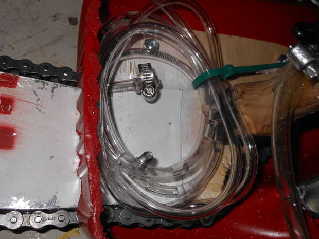 Envuelve el exceso de tubo (que yo realmente debo han cortado abajo bien antes de este paso) y rellenos en el lado derecho de la sierra.
