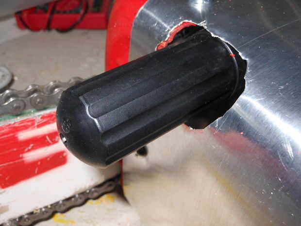 Finalmente, corte una arandela de goma de algunos 1/4 de goma y había pegado sobre la clase de agujero aspecto andrajoso, chungo.