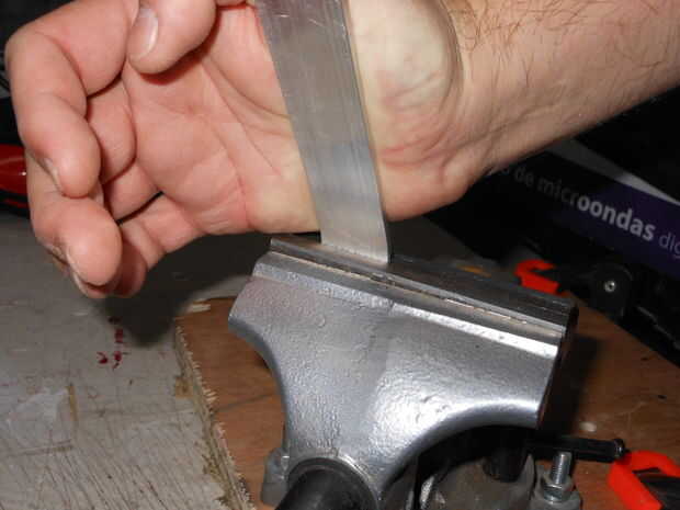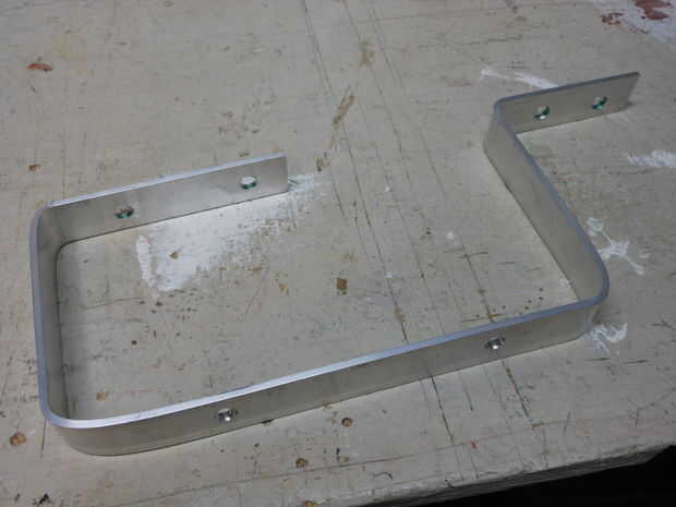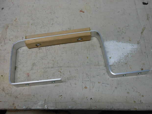 Me encontré con una longitud de robusto aluminio shapeable en Home Depot, y un poco de moldura de madera que era la forma correcta. Usando mi tornillo de banco y alguna grasa de codo, había doblado el aluminio en la forma adecuada y cortar a su tamaño.