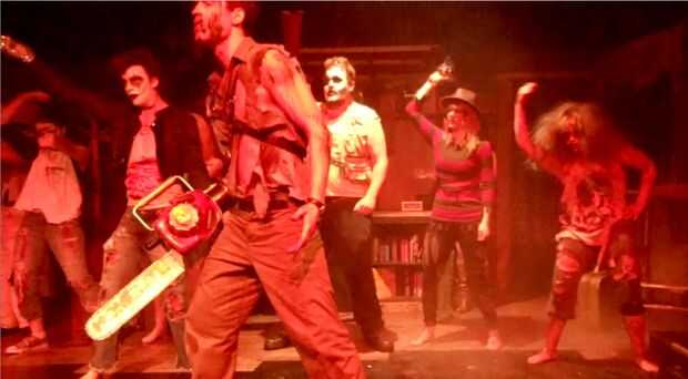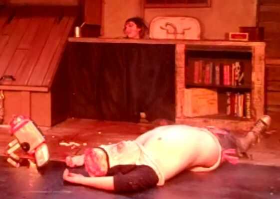 ¿Qué puedo decir del juego? Es... simplemente increíble. Fue lo más divertido que he tenido en un teatro, con un largo tiro. Al final estaba absolutamente empapado en sangre falsa, y mis mejillas lastimadas de sonriendo y riendo mucho. Todos los involucrados en el juego, desde el personal director y fondo, a los actores y la banda en vivo fue genial. Fue un manicomio desordenado, ridículo y sangriento, y me encantó! Una cervecería local produjo incluso un limitado funcionamiento ale "Muertos por Amanecer rojo" que estaba delicioso!