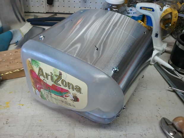 Por supuesto sería demasiado estrecha para lucir realmente como una motosierra, mucho menos para todo lo que necesitaba dentro de la jarra. Recogí un rodillo 7" ancho del metal de hoja en la ferretería. Comencé doblando sobre el final, por lo que no sería demasiado fuerte.