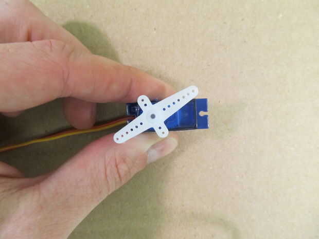 Una vez que se presionan todos los brazos de servo con la gama derecha de rotación, utilice el destornillador y el tornillo pequeño que vino con ellos a atornillar los accesorios de brazo.