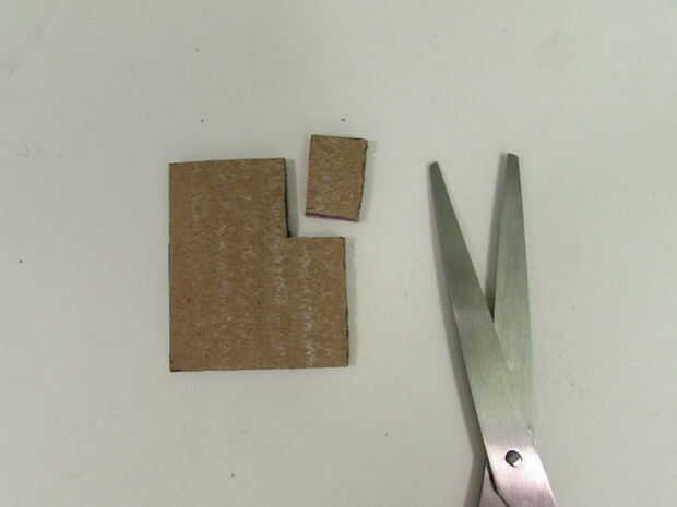 Ahora toma ese pedazo de cartón y coloque sobre la segunda pieza que corta en el paso anterior. Asegúrese de que está alineados correctamente y marque el rectángulo con el lápiz. Ahora corte el rectángulo de la esquina. Usted debe terminar con dos piezas que son aproximadamente la misma forma.