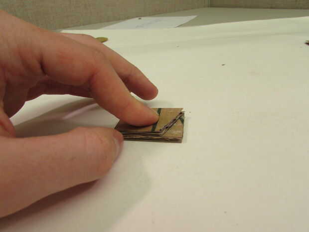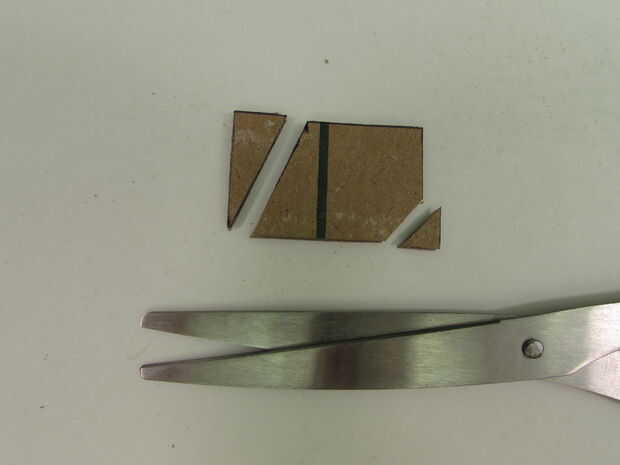 Corte a lo largo de esta línea y también cortar un pedacito pequeño de la esquina lejana.