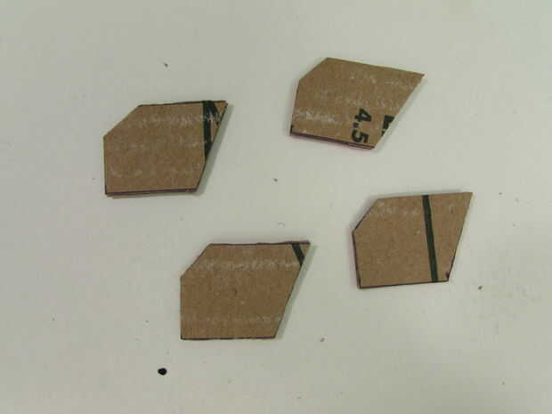 Ahora usa esta pieza como plantilla para dibujar líneas en las otras tres piezas. Cortar las piezas y debe tener cuatro piezas idénticas de cartón.