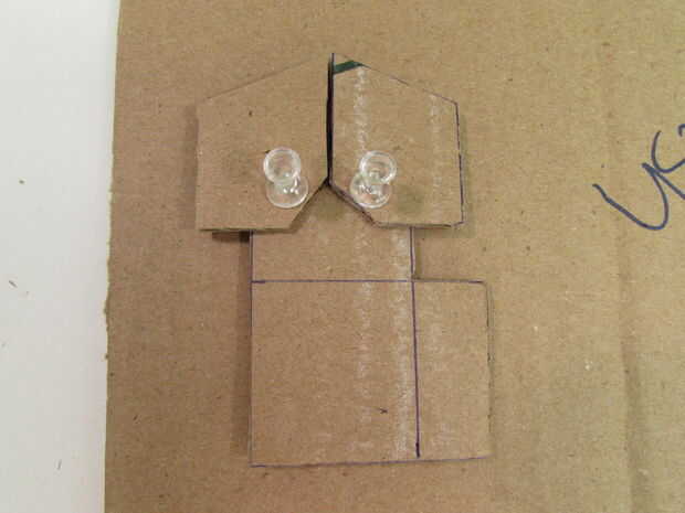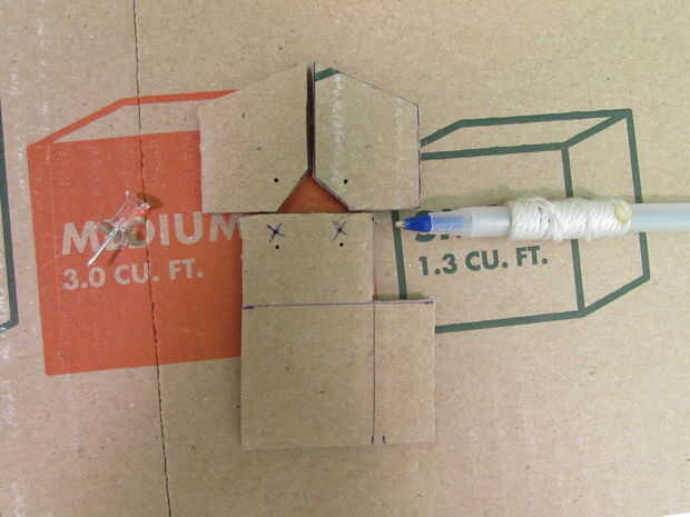 Lugar dos su garra de piezas sobre una de sus piezas de Palma (ponerlos en un pedazo de cartón de desecho para que no arruinara su mesa). Asegúrese de que sus consejos se alinean, y están centrada en el bien (como en la primera foto). Ahora empuje sus dos chinchetas en las esquinas. Perforar todo el camino a través de las piezas de la garra y la pieza de la palma. Las piezas de dos garras deben ser capaces de girar hacia afuera sin chocar entre sí.