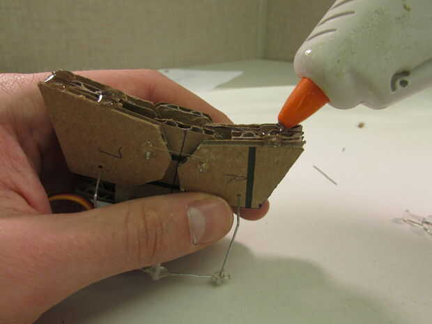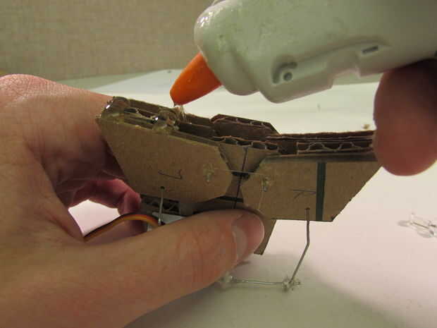Añadir una línea gruesa de pegamento caliente a lo largo del interior punta de una de sus garras (como en la segunda foto). Mover la realiza de una manera (un poco más de la mitad de una pulgada) y agregar otra línea gruesa. Por último, añadir una tercera línea a su otra garra para que se caiga entre los primeros cuando se cierra su garra.