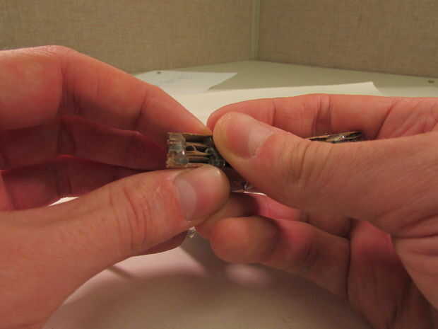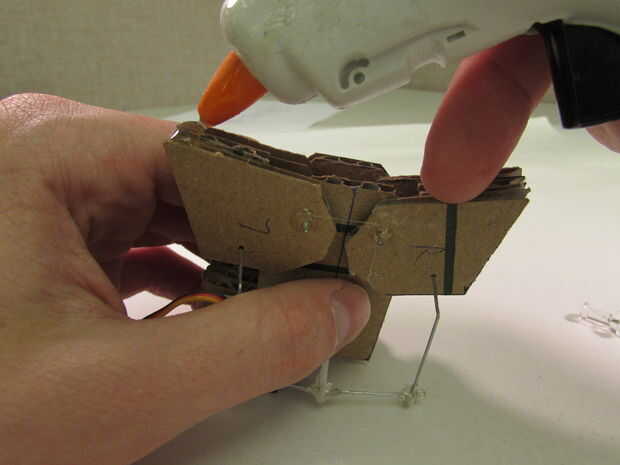 Abra su garra hasta el final, girando hacia atrás el brazo del servo. No intente abrir la pinza palanca abierta, esto puede doblar los cables, ya que son difíciles de doblar hacia atrás.