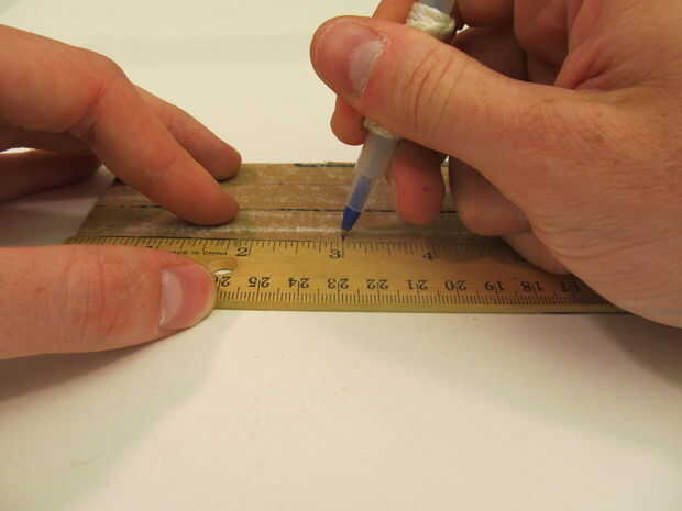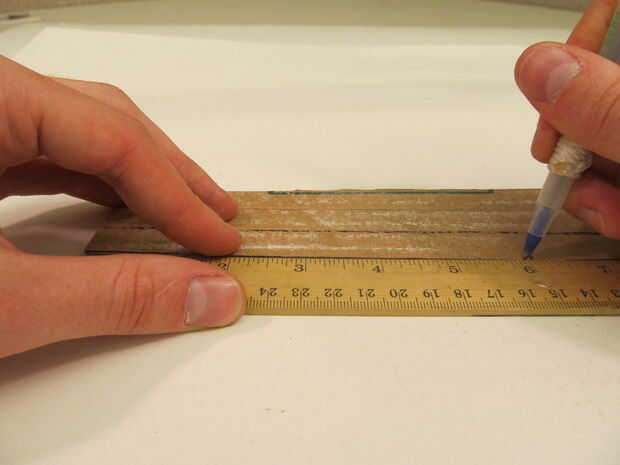 Medida de seis pulgadas desde el borde que se corta solo. Marcar en ambos lados y luego cortar.