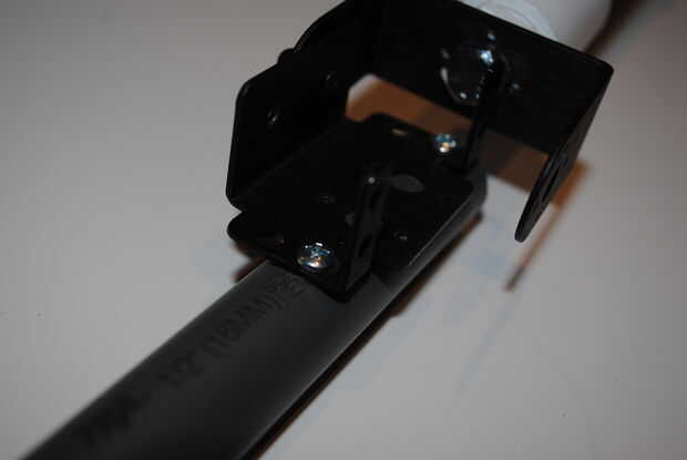 Conecte este tubo de PVC al soporte con dos tornillos y tuercas a través de estos agujeros.