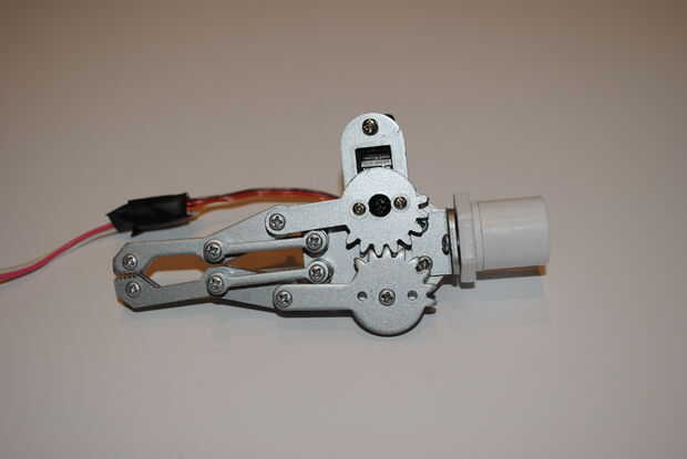 Finalmente, Enrolle cinta aislante alrededor de los servos y la garra que lo mantenga conectado.