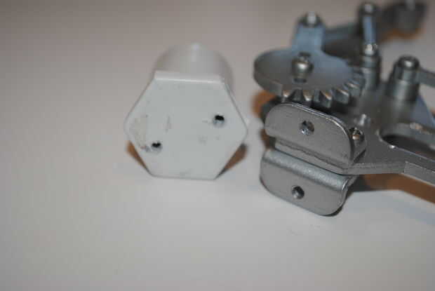 En primer lugar, perfore los orificios de montaje del motor de la garra por lo que son un poco más grandes (~3/16 ").