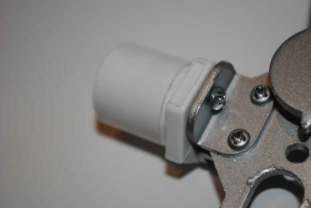 Conecte el extremo del tubo de PVC a la garra con dos tornillos, que se llevará algún esfuerzo, como los agujeros de montaje son un poco difíciles de alcanzar.