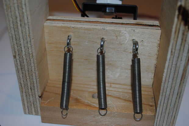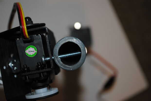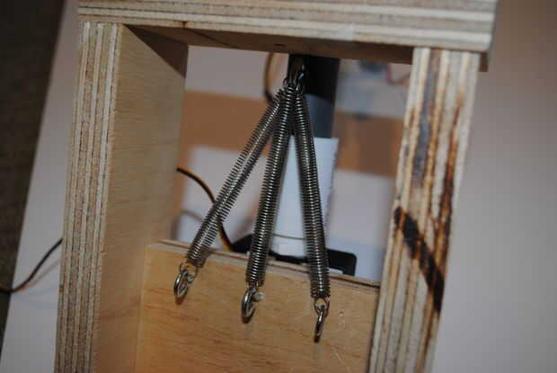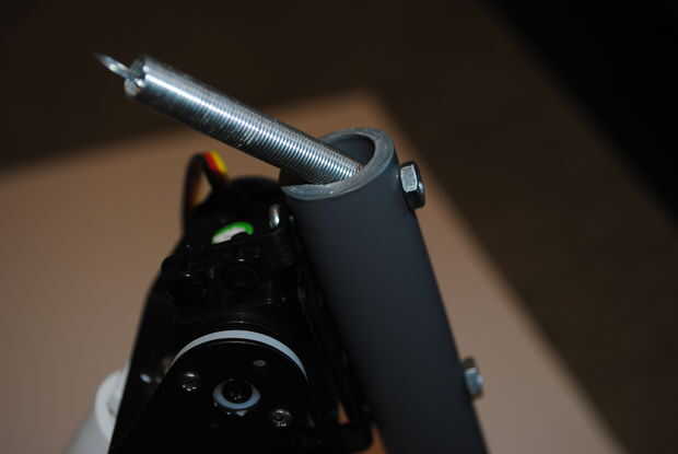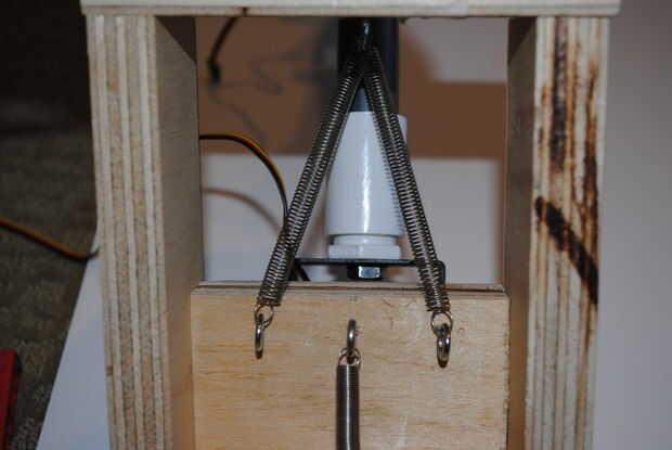 Usted notará que el brazo asumirá una posición vertical por defecto porque los resortes proporcionan más que suficiente par. Esto es fine porque niega gravedad, por lo que los servos se mueven contra una fuerza hacia arriba, en lugar de levantar contra gravedad.