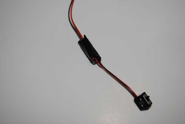 2. el conector Hitec tres de corte y soldadura en tres cables de extensión, como con el motor servo de la garra.