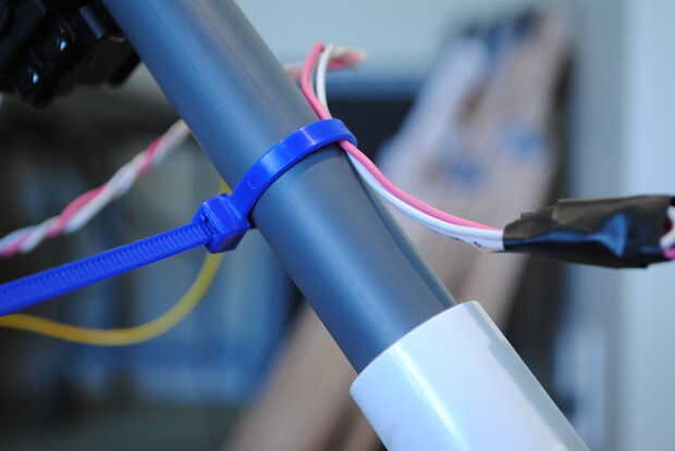 Zip empate el cable de extensión del motor garra a cada tubo de PVC una vez, para mantener los frágiles hilos de última hora.