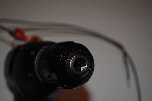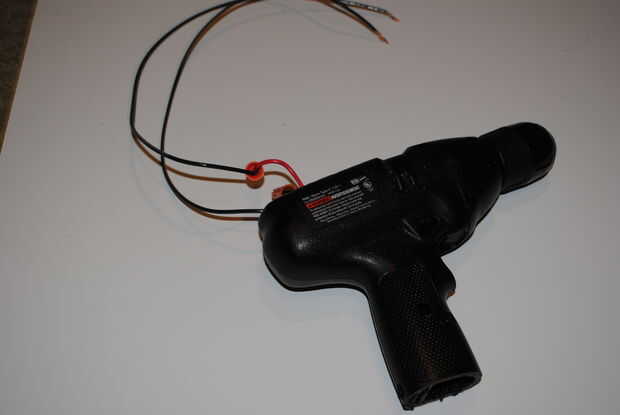 Abra el taladro y retire la batería y otros cables, dejando sólo el mandril, los engranajes, el motor y cables de positivo/negativo del motor.