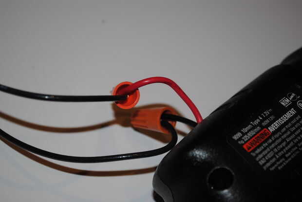 Cortar dos tramos de alambre y use capuchones de alambres para extender los cables de positivo/negativo del motor.