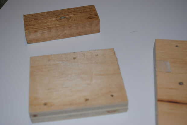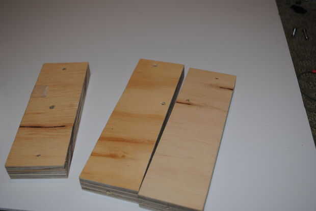 De madera contrachapada de 3/4", dos 2" x 6 1/4" las franjas de corte una tira de 2" x 5 1/2" y un 3" x 3 3/4" pieza.