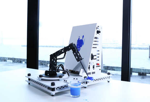 hacer un brazo robot que pinta acrílico sobre un lienzo vertical