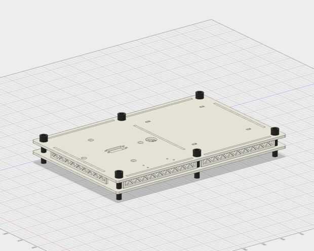 La base es la parte más simple de la estructura mecánica, pero proporciona muchas funciones valiosas. Cuatro pequeñas ranuras hacia la parte posterior la placa superior permiten el montaje de la base a colocar. Los agujeros no tienen ningún desplazamiento, por lo que el caballete se ajusta perfectamente, impidiendo cualquier movimiento lateral. El peso de la base y la fricción de las lengüetas en las ranuras impide que saltando. El anillo de apoyo hacia la parte delantera de la placa es asegurado por cuatro pernos M12 y elevado por tuercas M12. El anillo sirve para hacer un labio fino justo debajo el disco base del brazo, esto mantiene la plataforma alabee sin crear demasiada fricción para el servo base superar a medida que gira. Cuatro orificios hacia la parte delantera de la placa superior permiten el accesorio del sostenedor de taza de agua y paleta de miniatura. Estos accesorios perno en su lugar con tornillos M4 y les permitan modular debo más tarde decido intercambiar sacarlos o moverlos. Debajo de la placa de la cara son siete placas espaciadoras de madera que la ranura en la coincidencia de los agujeros rectangulares en el borde y el interior de las placas base. Estos crean una brecha lo suficientemente grande para el base servo a hundirse, alinear la base del brazo más cercano a la base de la lona y ocultan parte de los cables de servo. Los cables del brazo ejecutan hacia abajo y en un agujero grande antes de la lona y salida a través de e igualan agujero dentro de la torre de base. Por último, la placa inferior se fija a la las placas espaciadoras. Seis pernos M12 y nueces, con una arandela en cada sobre la placa frontal y debajo de la placa base apriete el conjunto base juntos. Estas combinan para añadir una buena cantidad de peso, que ayuda a contrarrestar el movimiento del brazo que oscila alrededor de (también se ven cool).