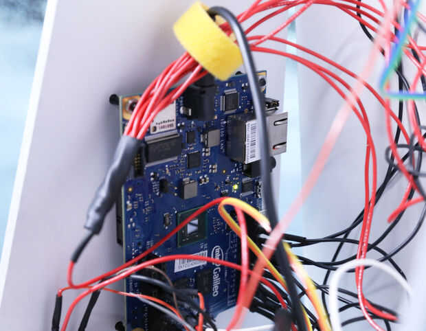 El Galileo es el corazón de este sistema, no sólo porque se ejecuta el programa, pero también es el mayor componente eléctrico individual. Diseñé el sistema eléctrico de tal manera que utiliza varón a las conexiones hembra encabezado a cada componente o módulo. Con este esquema pudo reducir al mínimo la huella electrónica (que generalmente se manifiesta en protoboard grande pcb) y además permitir el rápido montaje y cableado durante la instalación y pruebas de los componentes individuales. En última instancia, no uso todos los componentes montados sobre el funcionamiento final del robot.