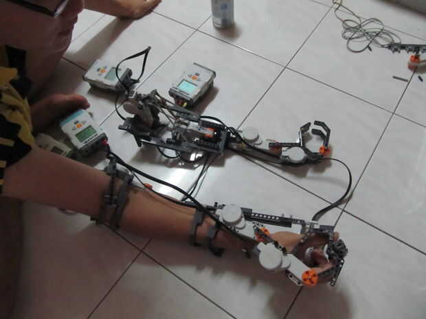 Por ahora el robot y el control sólo consisten en el brazo. El brazo y los controles se construyen utilizando Lego por NXT y programación en NXT-G.