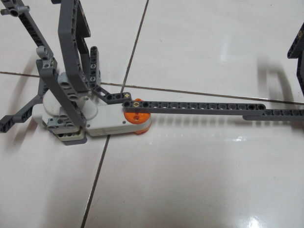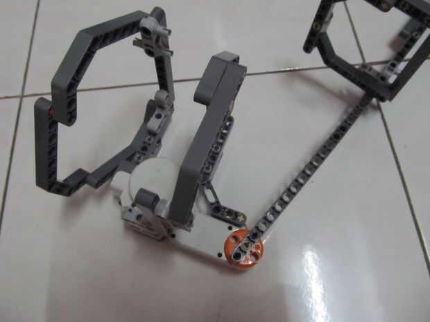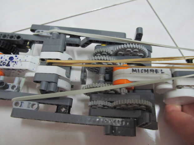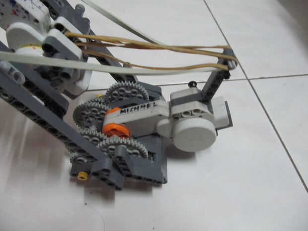 En cuanto al robot, ese peso va a causar una gran cantidad de momento (par). He intentado solucionarlo utilizando un poco de engranaje de reducción pero no fue suficiente. Este problema fue resuelto mediante la adición de gomas también ayudar cuando el motor necesita para sacar todo.