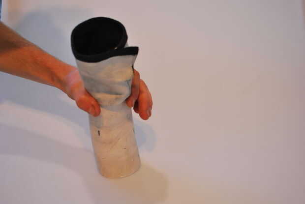 El calcetín se hace de dos piezas de tela y un trozo de Velcro. La primera pieza es un círculo, alrededor de 3 pulgadas de diámetro, con cerca de 10 ranuras corte alrededor del borde hacia el centro de una forma más de bóveda-como. Esta pieza circular tiene un agujero de 3/4 de pulgada corte en el centro para el final del Percebe para pasar a través de él. La segunda pieza de Fabrifoam es una pieza rectangular que se cose alrededor de la pieza circular para crear un tubo. La costura entre los dos bordes del tubo está conectada por la tira de Velcro.