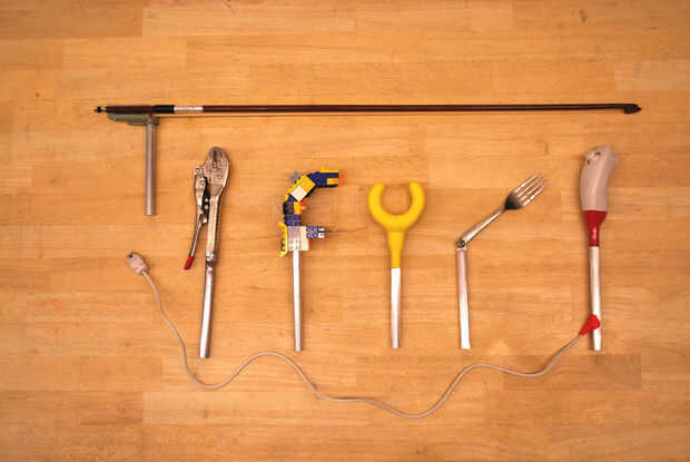 El extremo de la toma tiene un agujero de 1/2 pulgada en él y cada accesorio se monta en una varilla de 1/2 pulgada. Los accesorios de la abrazadera en con una abrazadera de poste de asiento de una bicicleta. Cualquier cosa que se monta en una varilla de 1/2 pulgada puede convertirse en un accesorio para el brazo prostético de Aidan. Por lo tanto, cuando estás haciendo tu mismo, divertirse imaginando las posibilidades! Las siguientes instrucciones de fijación son ideas inspirados por y para Aidan, pero siéntase libre de cambiar o adaptarlos para adaptarse mejor a sus propósitos.