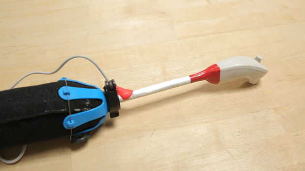 Una de prioridades de Aidan fue conseguir un nunchuck de Wii como su prótesis. Wii es una plataforma de videojuegos que requiere a menudo el juego a dos manos. Montando el nunchuck controlador hasta el final de Aidan prótesis, poder experimentar y jugar Wii más plenamente. Creación de una interfaz para todos los botones en el nunchuck de Wii estaba fuera del alcance de este proyecto, sino realizar las funciones del acelerómetro de la nunchuck avanzado importante en aumentar el acceso a la plataforma qué juego ofrece.
