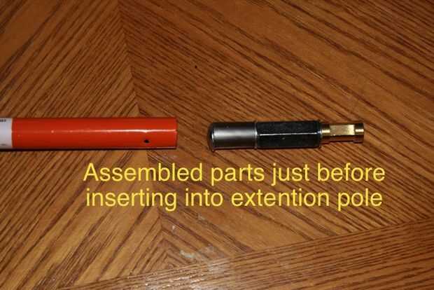 Tomando el inserto de tubo de metal, corte una pequeña sección que cabrían entre el perno cabeza de carro y la primera lavadora. Me quitó las arandelas, inserta el nuevo corte trozo de tubo en el tornillo, sustituye la arandela/acoplamiento tuerca/arandela y finalmente roscado en el poste de montura. Apretó todo teniendo cuidado de no dañar el poste de montaje de latón.