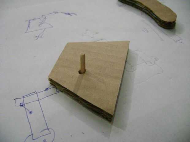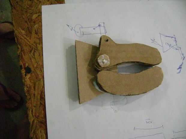 La pinza está diseñada para mover una sola pieza. Era más simple. El "dedo" que había pegado fijo y móvil estaba sentado en un árbol con un pedazo de palo que tenía un trozo de cartón cortado en un círculo pegado en la parte superior para no abandonar el lugar.