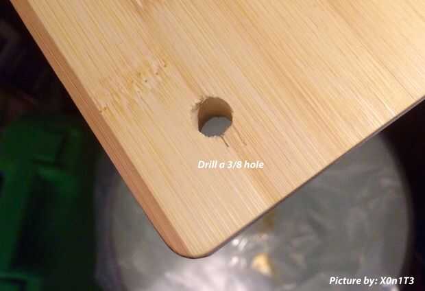Tome el taladro y perforar un agujero de 3/8 en el centro.