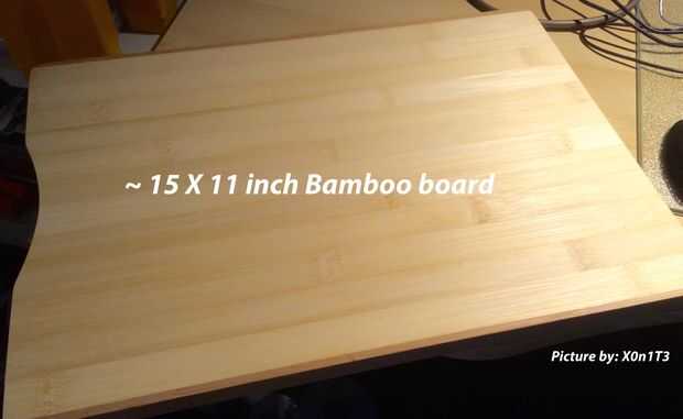 El Tajo de bambú que tengo es 15 X 11 pulgadas.