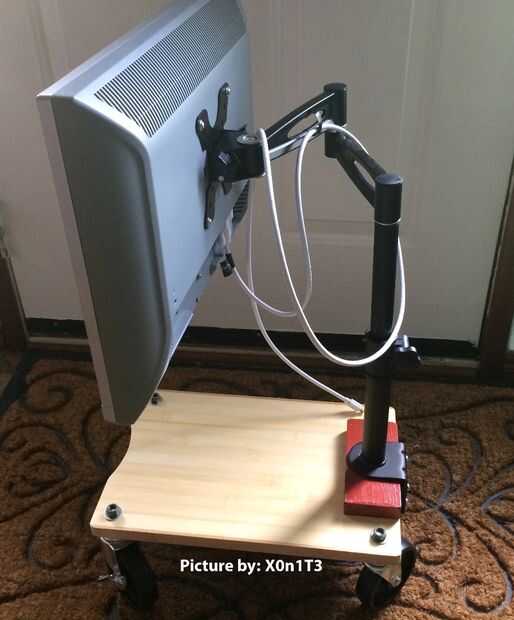A ser añadiendo un tubo de extensión de 35 pulgadas en el brazo de LCD. Luego poder ver al monitor aun cuando pie...
