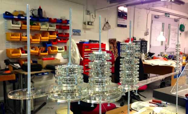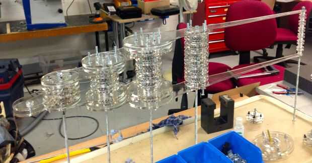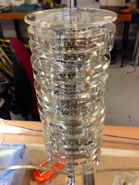 Perno de los componentes juntos como su construcción. Me pareció útil para mantener temporalmente las pilas verticales de rodamientos en lugar de tuercas en el andamio de roscas de tornillo vertical. Se trata de un montón de tuercas de giro arriba y abajo de la rosca del tornillo como cada rodamiento se construye.