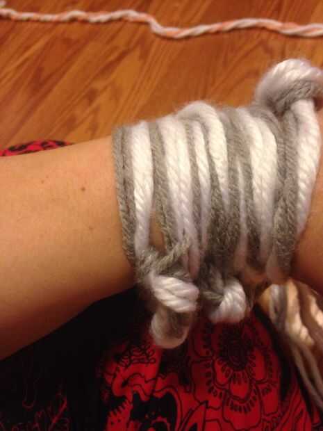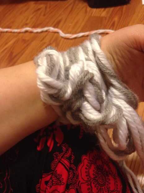 Para tejer, sostenga el hilo de trabajo en su mano dominante y con la otra mano, tire del lazo a través y hacer un lazo con el hilo de trabajo. Que nuevo bucle en su otra mano-esto constituye una puntada. Continuar hasta que tenga aproximadamente 7 pulgadas de la bufanda hecha punto, o sin embargo largo te gustaría tejer si sólo utiliza un color.