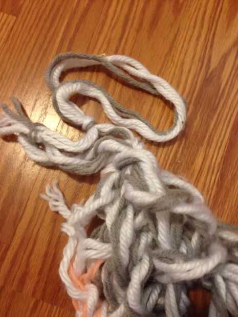 Cuando se han utilizado casi la totalidad de su hilado o usted cree que su bufanda es lo suficientemente largo, puede comenzar a salir. Primero, tejer las dos primeras puntadas a su brazo. Luego, tomar la primera puntada (#2 en el brazo) y pasar, así que la puntada. Continuar hasta que haya una puntada izquierda y ate con el exceso de material que tienes desde el principio del proyecto.