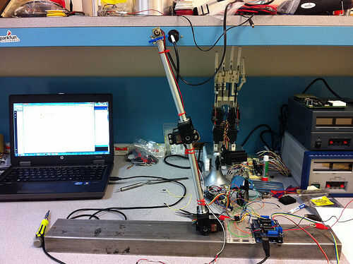 También tendrás una base de madera o metal para atornillar el motor servo de la primera y el soporte a. Encontré un trozo de canal u de aluminio en la tienda de máquina del sótano en mi escuela, pero un 2 x 4 funcionaría igual de bien.