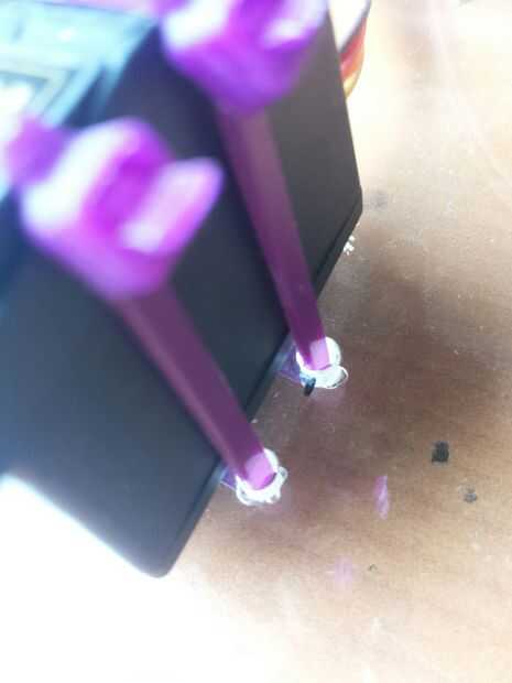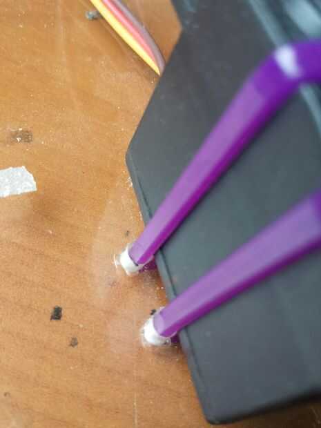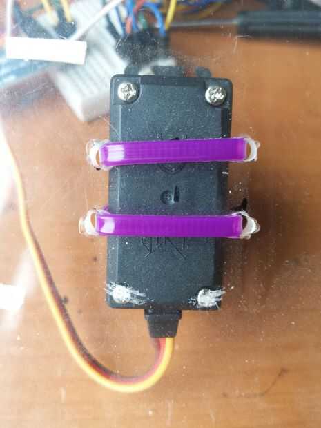 En primer lugar tomar la base y un servo s3003, luego identificar el centro de la base (imagen 1) y poner el servo como en los imagen 1 entonces cuatro agujeros (Foto 2 y 3) para poner dos amarras plásticas (Figura 4)