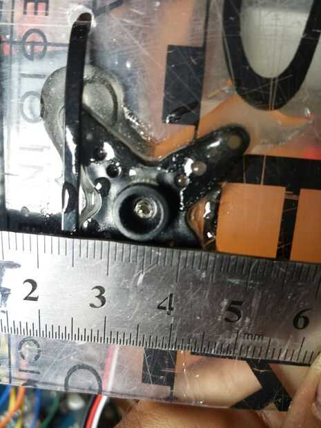 Identificar el centro de la base del movimiento y hacer un agujero de 3mm y poner el brazo s3003 como en la segunda foto.