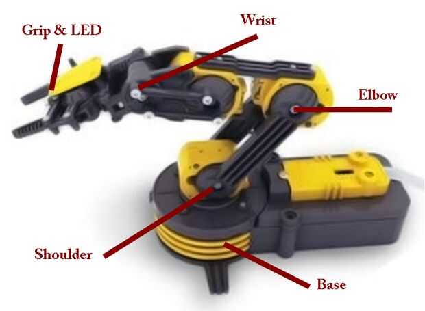 Cada comando brazo utiliza un byte de información que se envía a través del usb al controlador en el brazo. Nuestro software simplemente manipula la información que recibe el brazo.