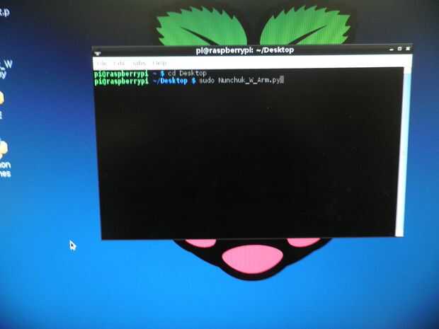 La foto de muestra: sudo Nunchuk_W_Arm.py, pero se olvidó de añadir el python allí. Que se supone que es: sudo python Nunchuk_W_Arm.py