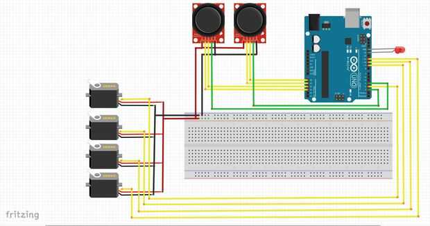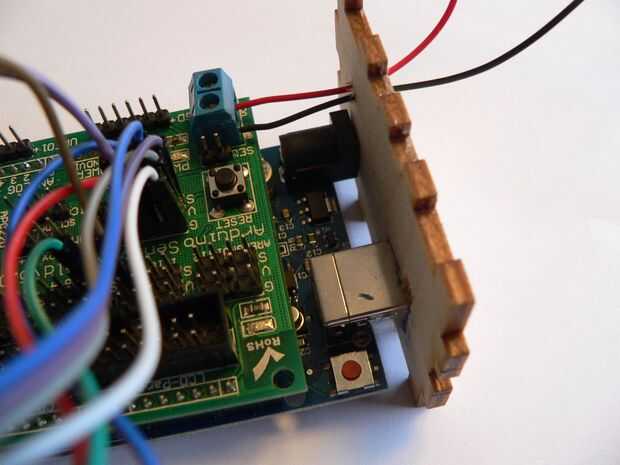 Siguiente en la lista es la pequeña caja para la electrónica. En la parte inferior tiene el arduino, de la pantalla. Planea hacer la caja de la batería dentro de la caja, pero se vería muy voluminoso y no puede reemplazar la batería que fácil. Yo también recortar unos agujeros donde va el cable usb en el arduino, y donde salen las líneas de energía y los cables de servo. He añadido algunas instrucciones de lujo sobre el caso. Usted puede encontrar los planes para el caso de abajo debajo.