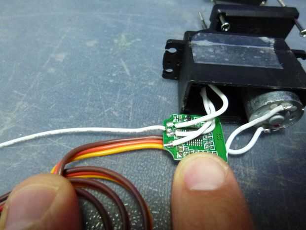 - La soldadura de alambre a la media conexión de potenciómetro de servo