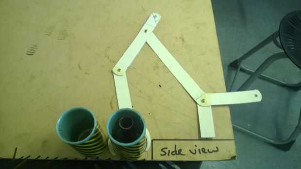 modelo tarjeta prueba este concepto que encontré que las dimensiones generales permitidas casi suficientes distancia mínima requerida pero para usar jeringas para controlar no funcionaría por ejemplo la jeringa en el segundo pivote hay que hacer todo su trabajo en el tirón para uno no está diseñado para tener un muy buen vacío y también para que el operador tire la jeringa de nuevo no puede realizar múltiples tareas y utilice los otros controles. De discusión con el Señor Richardson intentamos colocar la jeringa debajo pero ciertos soportes para mantenerlos no alcanzaría lejos bastante así que decidimos no desarrollar esta idea que tenían otros problemas como la contracción de la jeringa del brazo principal.