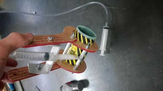 el conjunto creado perpendicular cuelga el suelo así que fueron siempre está en la Junta todavía puede agarrar el tubo ya que utiliza su peso colgando. Durante la prueba me pareció que mi uña tambaleante porque si aprieta los tornillos lo más flex el acrílico por lo que hablé con el Sr. Richardson sobre él y se nos ocurrió la idea de deslizarse sobre las barras que se cortan a la longitud correcta y tuve algo para apretar los pernos contra a los tubos. Para el acrílico de la garra es el más adecuado como debe cortarse fácilmente a curvas para poder recoger el contenedor. También es bastante fuerte. De inicial funcional prueba a la garra, debido al diseño físico permanece cerrado en el envase incluso con la presión de la ne en la jeringa que es una de las razones decidimos utilizar esta idea sobre los demás, que ayuda en el control de este brazo robot.