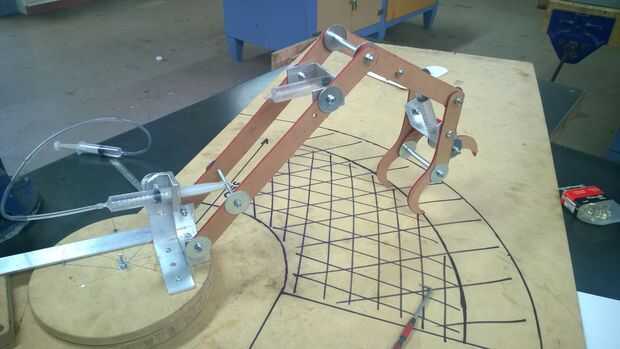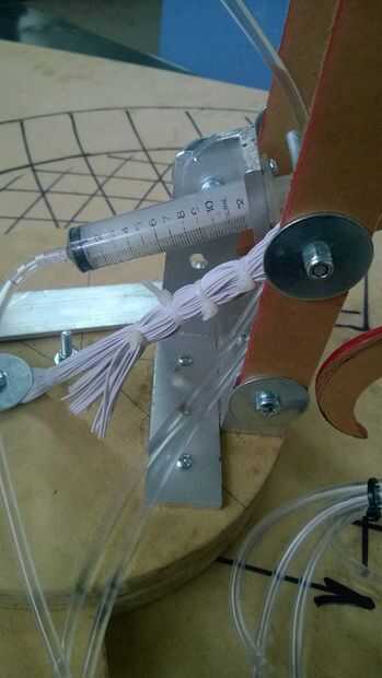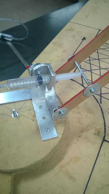 no fue capaz de retraer el brazo como lo fue pesada por lo que discutí la Idea con el Sr. Richardson de usando un resorte para ayudar a la retracción del brazo, pero el único problema era para encontrar un resorte con la tensión correcta sería muy difícil entonces me acordé que tenía algunas cuerda del amortiguador auxiliar de cuando fui puenting que tiene cientos de pequeños filamentos que yo podía seguir añadiendo hebras hasta conseguir la tensión correcta y después de la prueba funciona bien. Y ahora tengo la tensión a un punto donde se automático retraiga completamente extendido y con el envase que ayuda mucho con el control de sus movimientos como no tienes que poner mucho esfuerzo en Contracción la jeringa que en la prueba Señor Richardson encontraron muy útil.